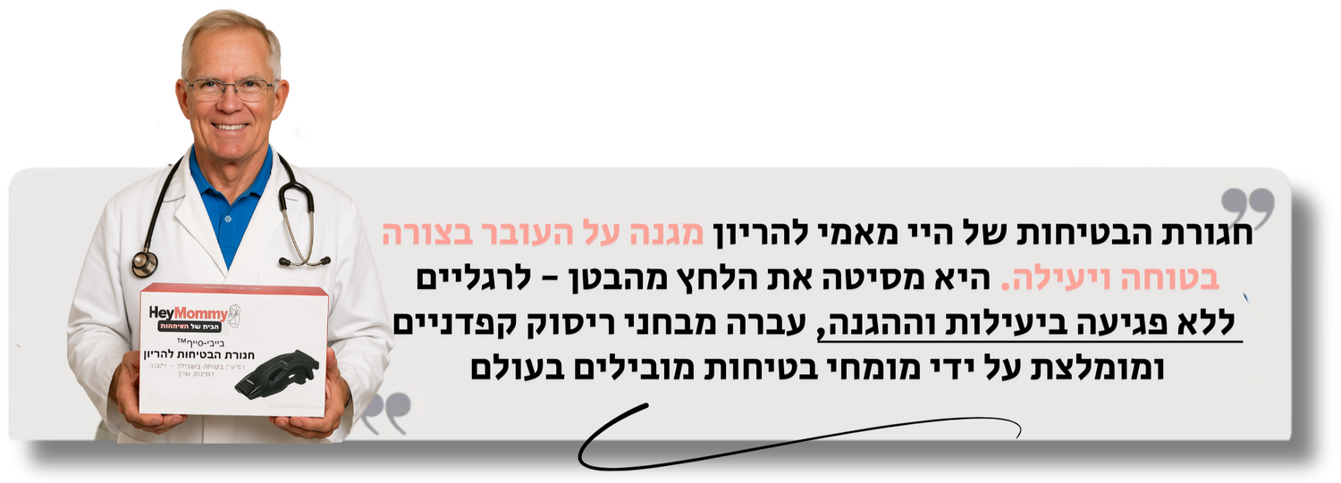 הסיבה שזה קורה היא שהחגורה הרגילה לוחצת ישירות על הרחם והעובר, מגבילה את זרימת הדם, ויוצרת נקודת לחץ מסוכנת בדיוק במקום הרגיש ביותר.